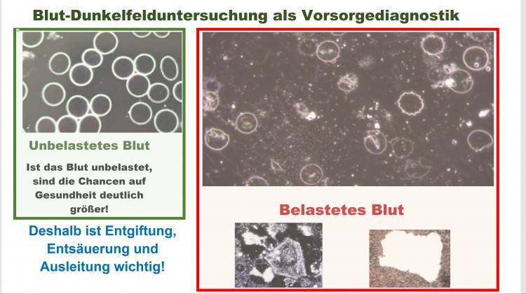 Dies alles und Weiteres wie z.B. die Belastung des Blutes durch Bakterien, Parasiten etc., Entzündungsherde, Schimmelpilze, Verformungen und vorzeitige Zersetzung der roten Blutkörperchen lassen sich mit einer speziellen Untersuchungsmethode erkennen, nämlich mit der